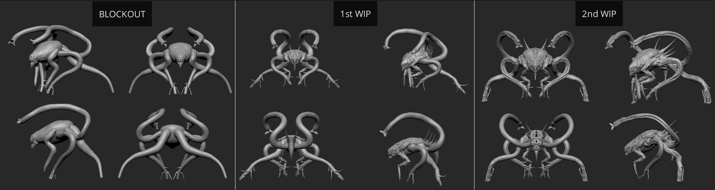 After finishing the study of the creature, I started the 3D modeling phase in ZBrush.